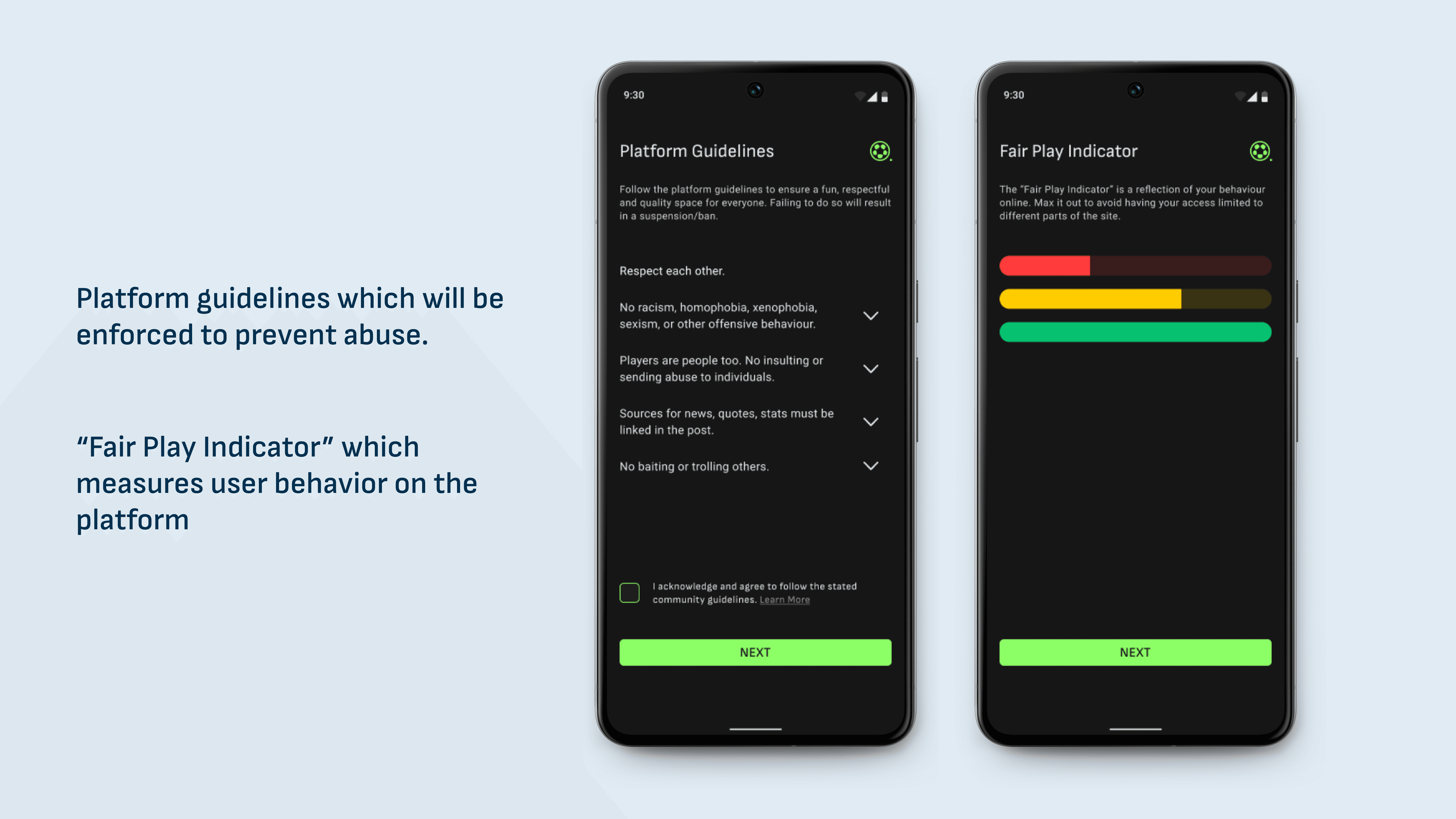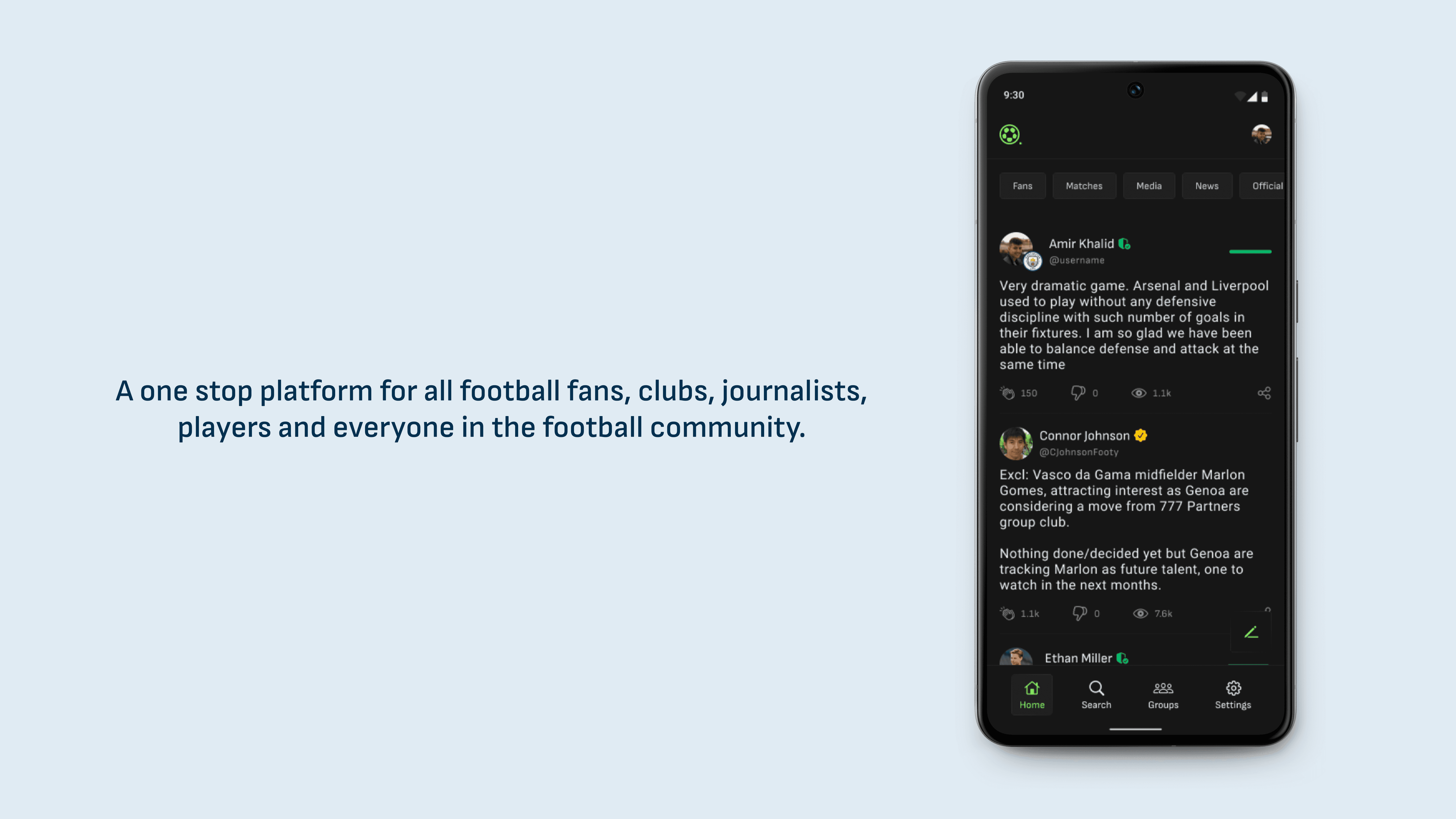 Social media spaces with billions of users have had widespread, long term side effects. This project reimagines online spaces by creating a dedicated space for one user group, in this case, the football community. The aim is to design a platform that allows users to engage in a more positive manner.