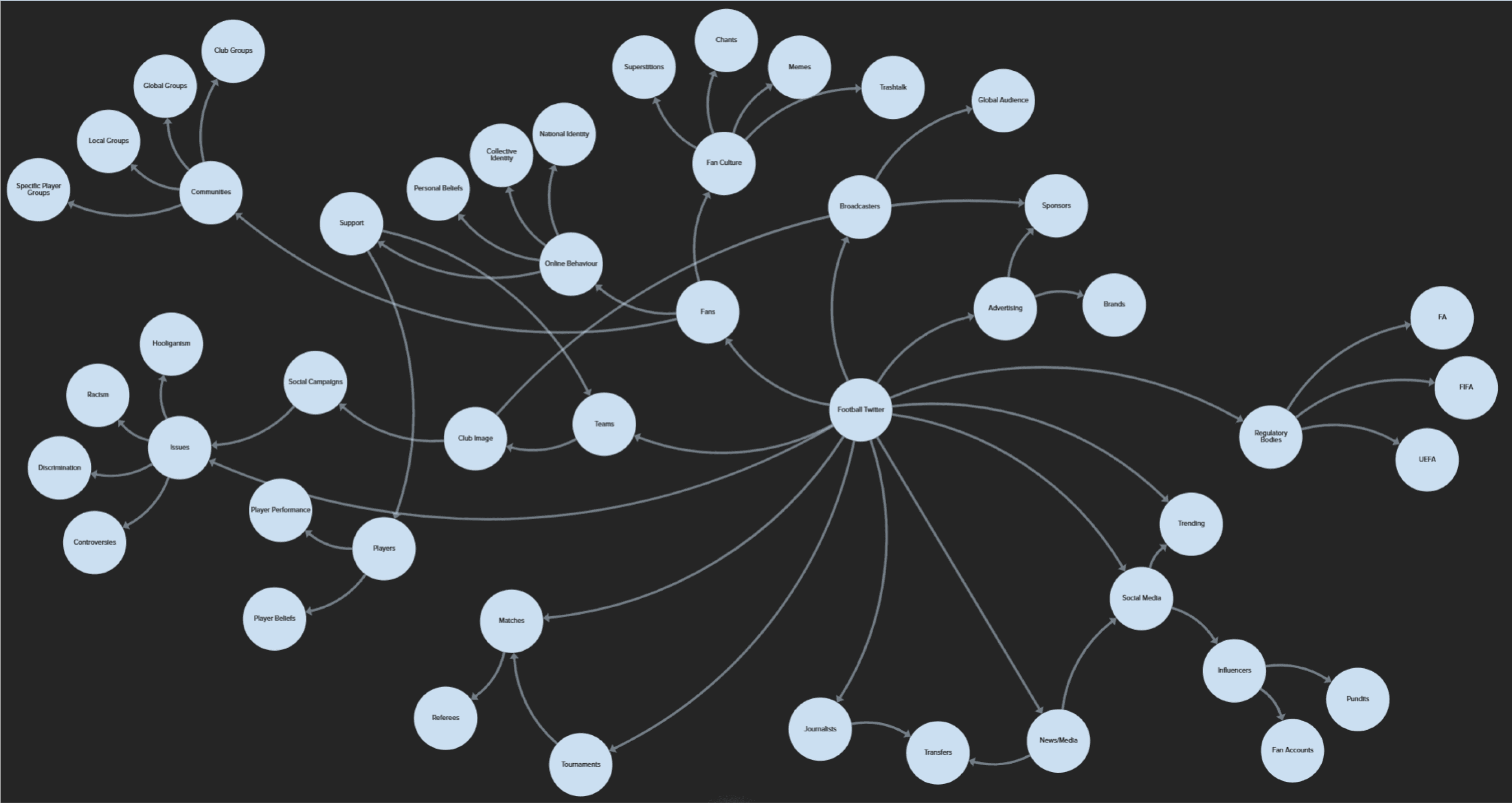 With the football community being one of the largest and with lot of prevalent issues within it, I decided to further study this specific community on Twitter and mapped the different groups in the community.