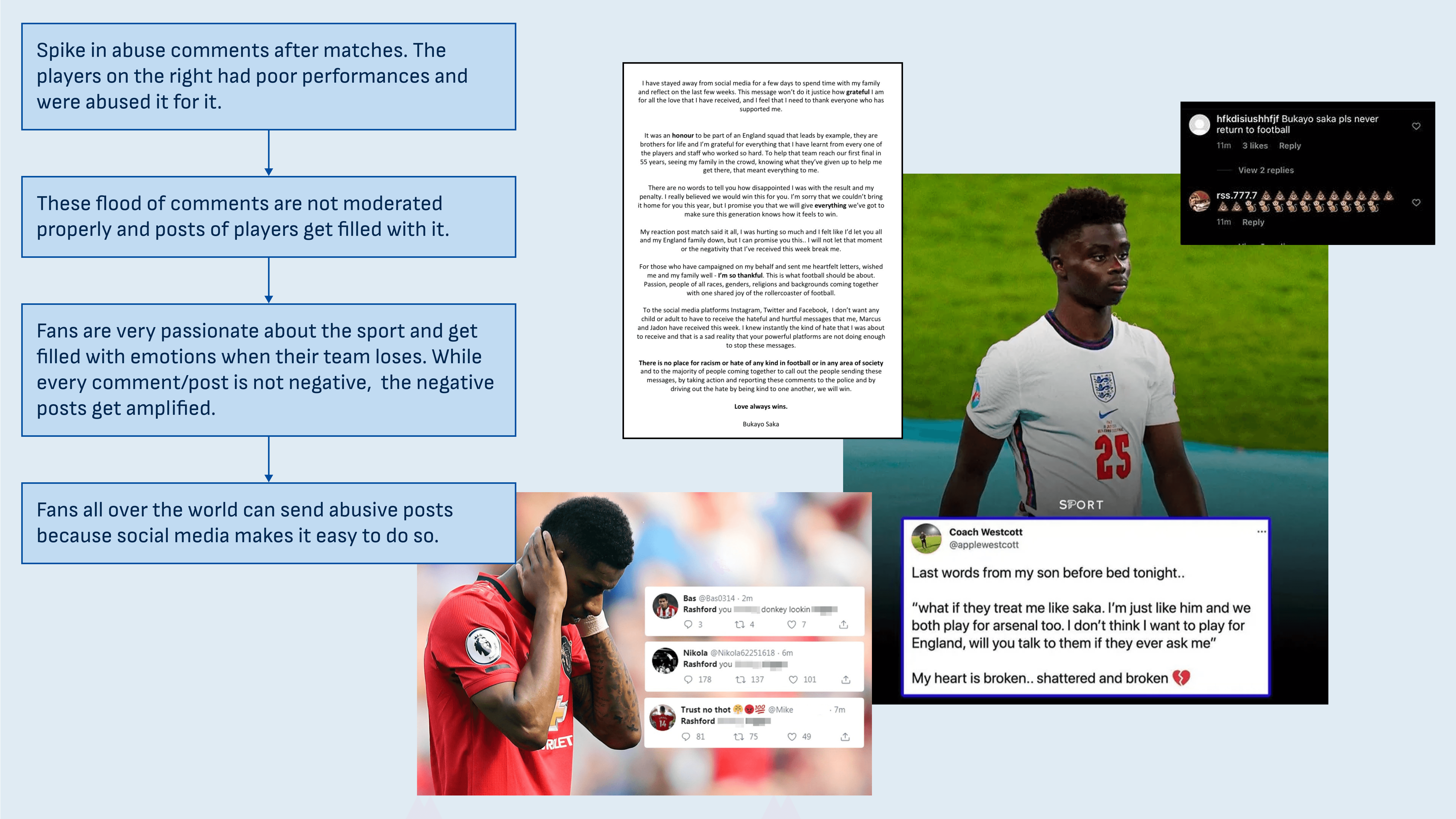 When official accounts like the Premier League (England's top league) post about social issues like supporting the LGBT community there are homophobic comments from some fans such as “disgusting” and “going to stop watching”.