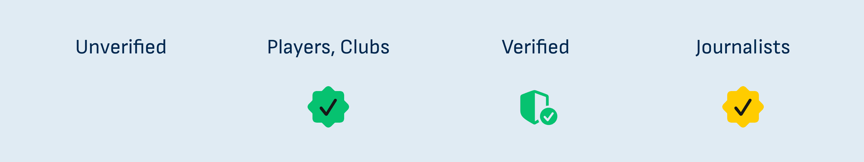 Specific verification types to identify legitimate accounts and avoiding impersonation. Verification cannot be bought but will be validated by a team.